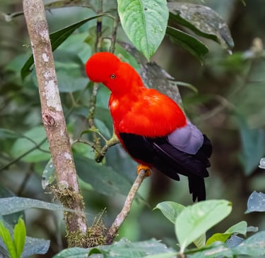 Entre los 1.700 y 2.400 m, la reserva alberga una increíble variedad de aves: tángaras coloridas, tucanetes, trogones, colibríes, quetzales (estacional), y muchas bandadas mixtas que se mueven a diario. Y por supuesto, tenemos un LEK del majestuoso Gallito de la Peña en nuestra propiedad.